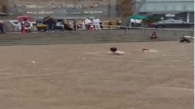 मुंबई बारिश ने ओबेरॉय मॉल को बनाया स्वीमिंग पूल, सोशल मीडिया पर लगे मजेदार तंज