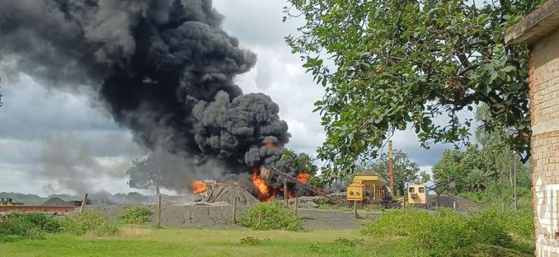 कोडरमा। मरकच्चो प्रखंड के कोडरमा-गिरिडीह रोड स्थित बरियारडीह मोड़ के पास मंगलवार दोपहर एक मिक्सर प्लांट में भीषण आग लग गई। प्लांट में अलकतरा से भरे टैंकर को गर्म कर अनलोड किया जा रहा था, तभी अचानक आग भड़क उठी और देखते ही देखते टैंकर पूरी तरह लपटों में घिर गया।