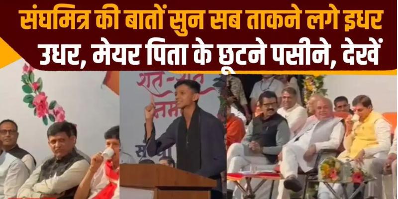 इंदौर: देवी अहिल्या विश्वविद्यालय में आयोजित वाद-विवाद प्रतियोगिता के मंच पर उस समय सभी चौंक गए, जब इंदौर महापौर पुष्यमित्र भार्गव के बेटे संघमित्र भार्गव ने रेलवे की खामियों पर खुलकर निशाना साधा। मंच पर मुख्यमंत्री मोहन यादव और विधानसभा अध्यक्ष नरेंद्र सिंह तोमर मौजूद थे। संघमित्र के तीखे भाषण पर वे भी ठहाके लगाने से खुद को नहीं रोक पाए। इस दौरान बड़े नेता उसकी बातों को सुनकर भौंचक्क भी थे। वहीं, इंदौर मेयर के पसीने छूट रहे थे।