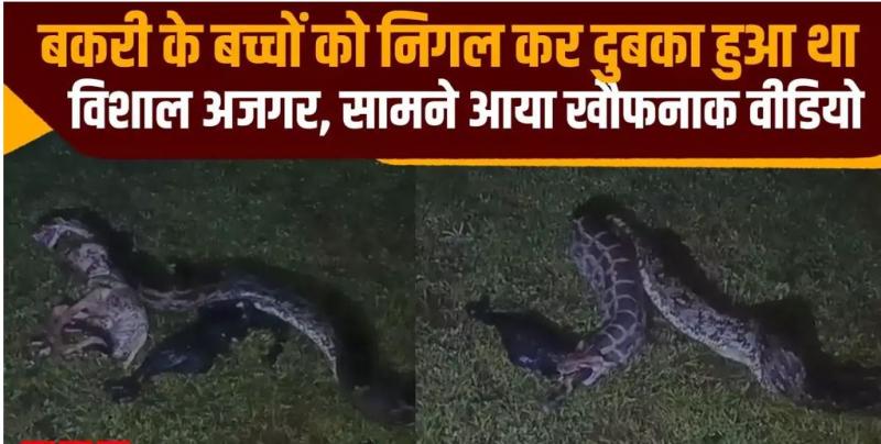 विशाल अजगर का हैरतअंगेज करतब: बकरी के दो बच्चों को निगलने के बाद जंगल में जाने से पहले उगल दिया, VIDEO सामने आया