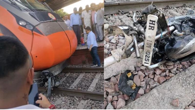 वंदे भारत ट्रेन और बाइक सवार के बीच टकराव टला, यात्रियों को झटका लगते ही हड़कंप मच गया