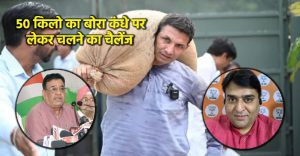 वहीं कांग्रेस नेता मुकेश नायक के चैलेंज को भाजपा ने सशर्त स्वीकार किया। बीजेपी प्रवक्ता डॉ गुलरेज शेख ने कहा कि जीत पटवारी की तरह 50 किलो का बोरा लेकर मैं चलूंगा। पीसीसी से शिवराज जी के बंगले तक चलने को तैयार हूं। डॉ गुलरेज ने कहा कि मुकेश नायक यह स्वीकार करें कि ऐसा होने पर वो फूल सिंह बरेया की तरह मुंह काला करेंगे और बीजेपी प्रदेश कार्यालय में आकर मुंह काला करने को तैयार हैं।