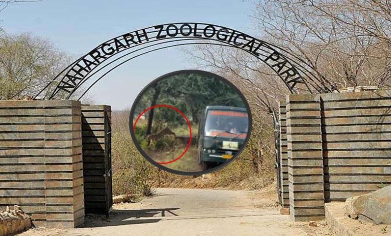 नाहरगढ़ सफारी में बड़ा हादसा टला! फंसी गाड़ी के पास आधे घंटे तक घूमता रहा बाघ