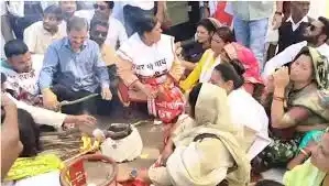 उमा भारती ने टीकमगढ़ में पोहे-जलेबी बेचकर जताया विरोध