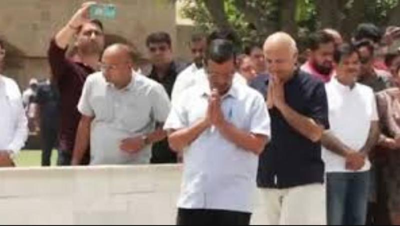 अरविंद केजरीवाल AAP नेताओं के साथ राजघाट पहुंचे