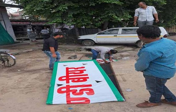 अवैध बूचड़खानों के खिलाफ हिंदू संगठन का निगम घेराव, पुलिस रोकने पर हनुमान चालीसा पाठ