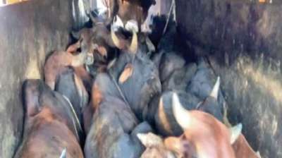 भीलवाड़ा: गोवंश से भरा ट्रक पकड़ा, ड्राइवर फरार, गोभक्तों ने लगाई आग