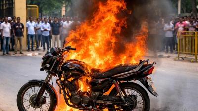 जिला न्यायालय के पास चलती बाइक बनी आग का गोला, मचा हड़कंप